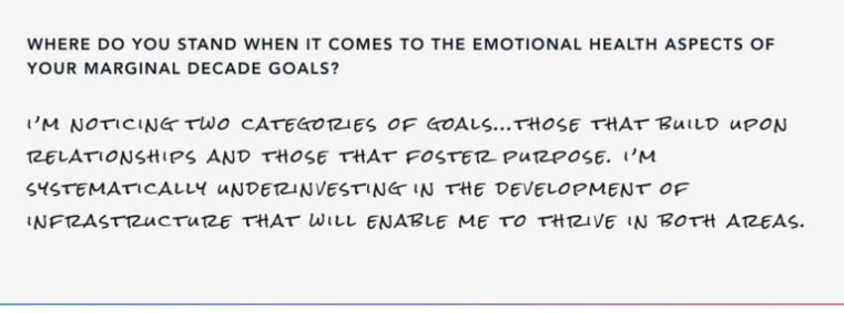 Third, reflect on the emotional health aspects of your Marginal Decade goals. Did you pursue activities that furthered those goals?