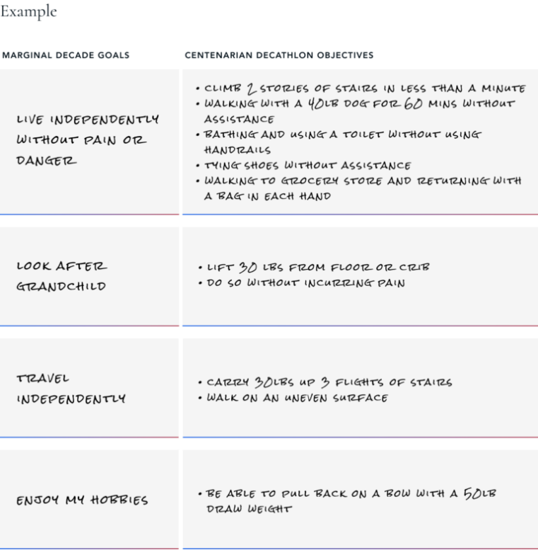 How am I doing based on your Centenarian Decathlon objectives, and do I need to add new objectives?